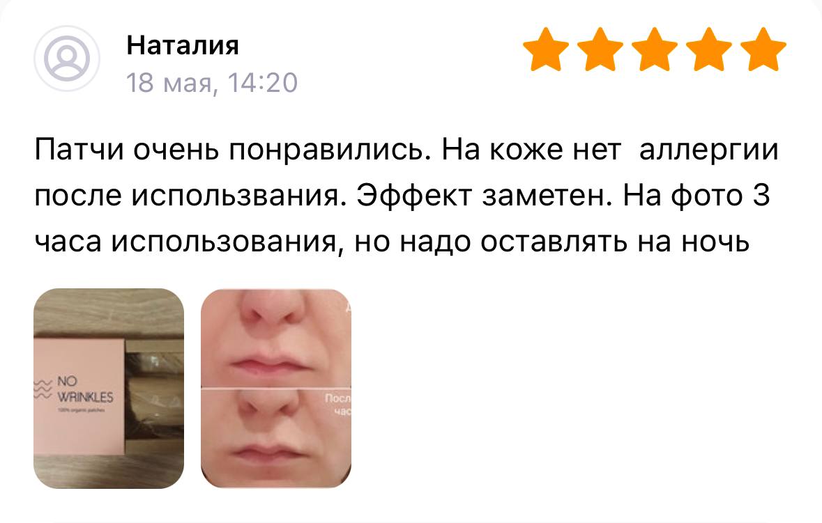 100% органические пластыри против морщин. Неинвазивное и супер-эффективное устранение морщин. Фиксируют кожу на длительное время, ограничивая образование новых морщинок и разглаживая имеющиеся. Натуральный состав не раздражает кожу и не травмирует ее. На следующее утро вы уже увидите результат!